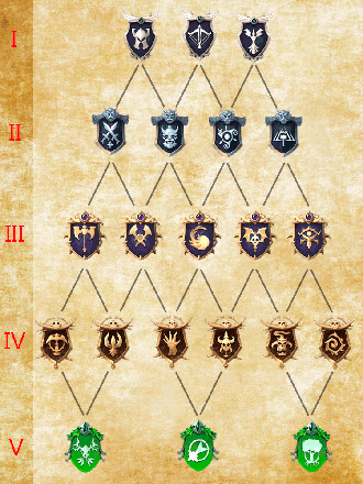 В библиотеке появилось описание дерева развития персонажей, варианты взятия рангов на новом уровне в котором зависит от того, кем Вы являетесь на текущем уровне.